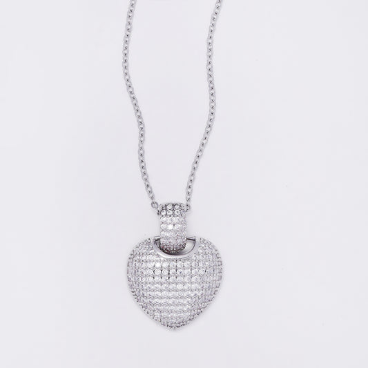 SSYN7292 - Steel 40cm + 5cm paperclip & curb link heart necklace