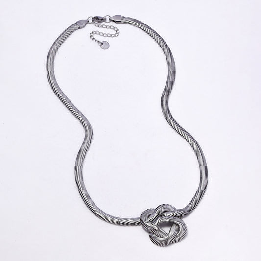 SSYN7310 - Steel 42cm + 5cm x 5cm double knot snake necklace
