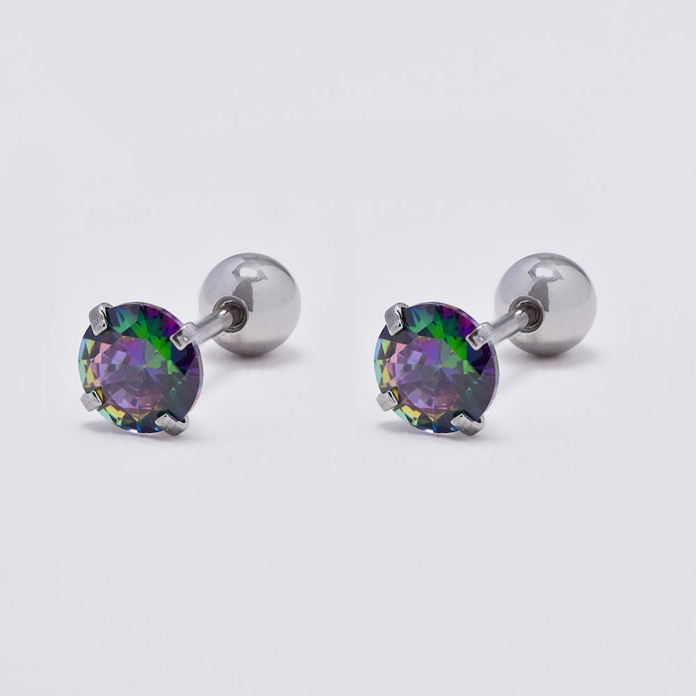 2 Pack stainless steel 5mm round multi colour cubic zirconia cartilage piercing with ball closure - SSYBJ4851