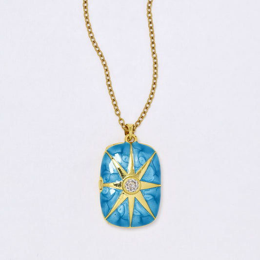 CZYN7302 - Premium brass 45cm + 5cm CZ & enamel 8 pointed star locket necklace