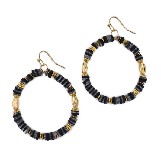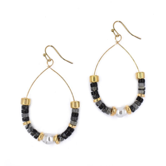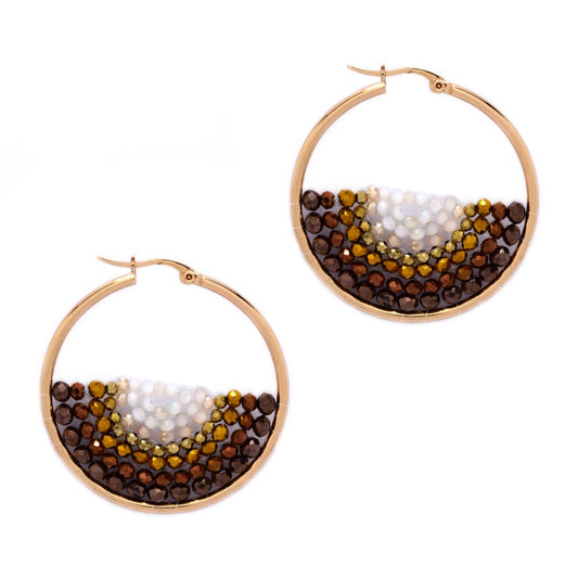Beaded oval hoop with centre pearl fashion earring - YE4273