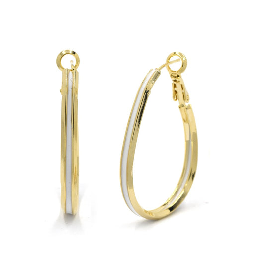 Striped oval hoop fashion earring with 925 pin - YE4210