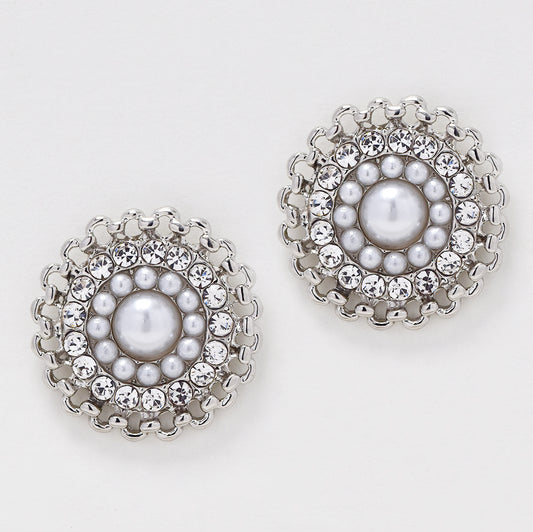 Round faux pearl and rhinestone stud fashion earrings - YE5067