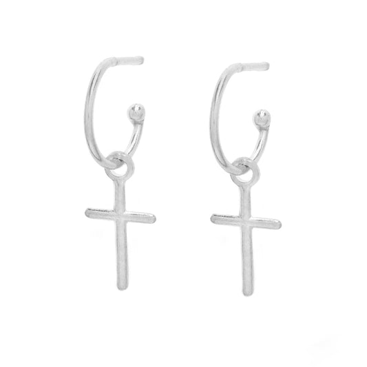 925 Silver hoops with cross charm earring - SE1028