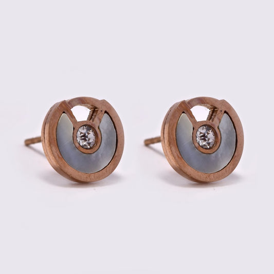 Stainless steel mother of pearl round cubic zirconia stud - SSVE8702