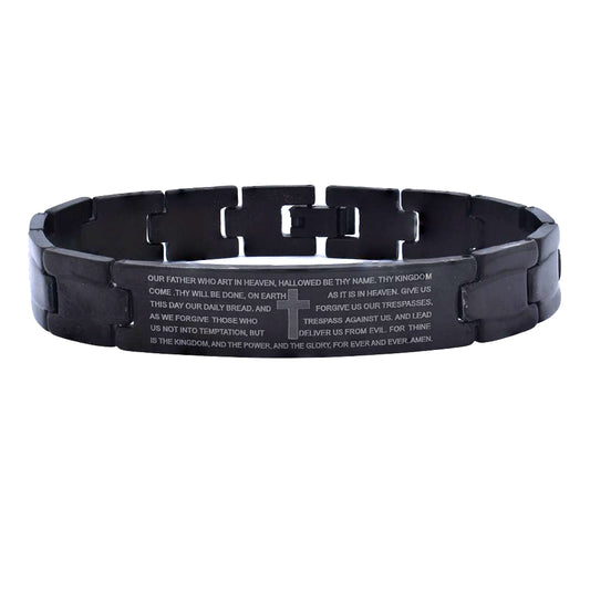 Stainless steel prayer cross black within silver cross frame pendant 41mm x 27mm - SSGP9404