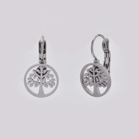 Stainless steel tree chain link pull through silver earrings - SSYE5515