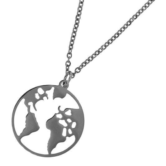 Stainless steel world map necklace - map: 20mm chain: 45cm + 5cm extension chain - SSYN2091