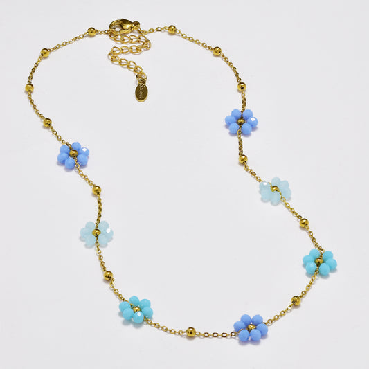 Steel 39cm + 5cm flower bead and ball necklace - SSYN5861