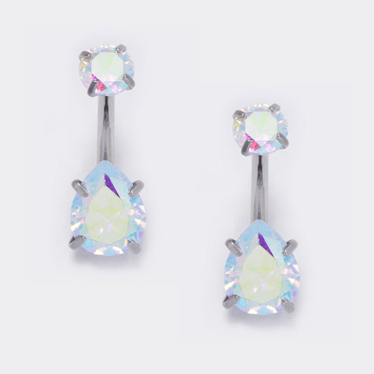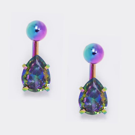 Steel teardrop double cz belly ring - 2 pack - SSYBJ5751