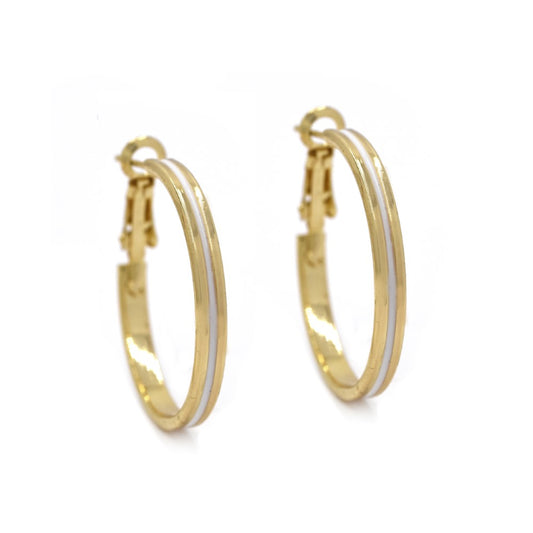 Striped oval hoop fashion earring with 925 pin - YE4210