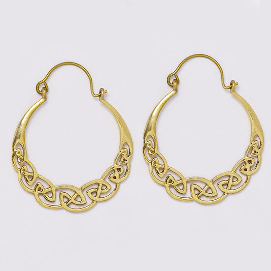 Brass flat Celtic knot basket design brass hoop earrings - IFE720