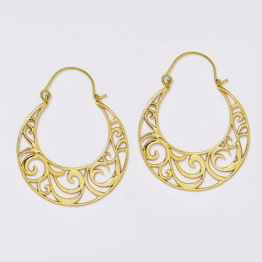 Brass swirly flat basket design brass hoop earrings - IFE724