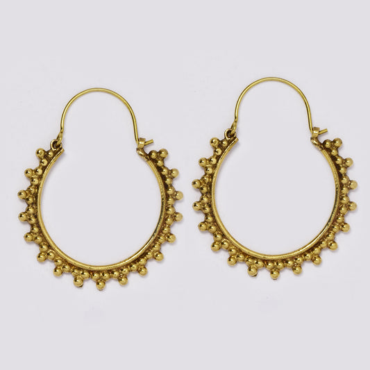 Brass large round pointy design flat basket hoop brass earrings - IFE726