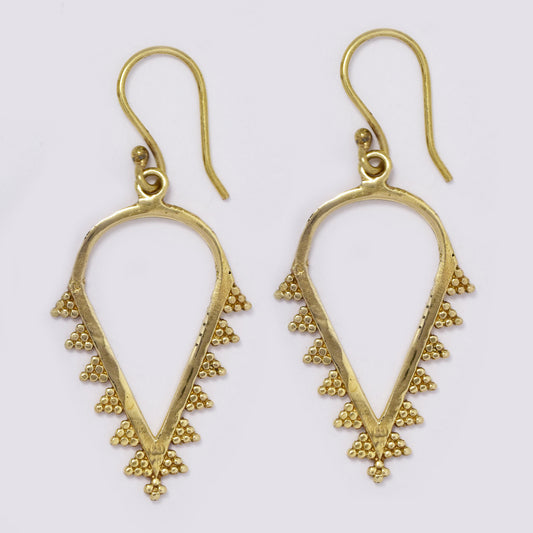 Brass pointy flat basket lotus petal design brass hoop earrings - IFE722