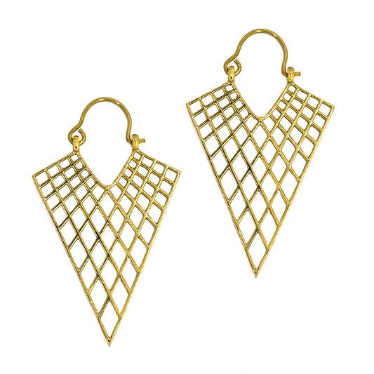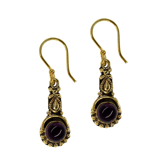 Brass gemstone flower decorative tip drop earrings - IFE565