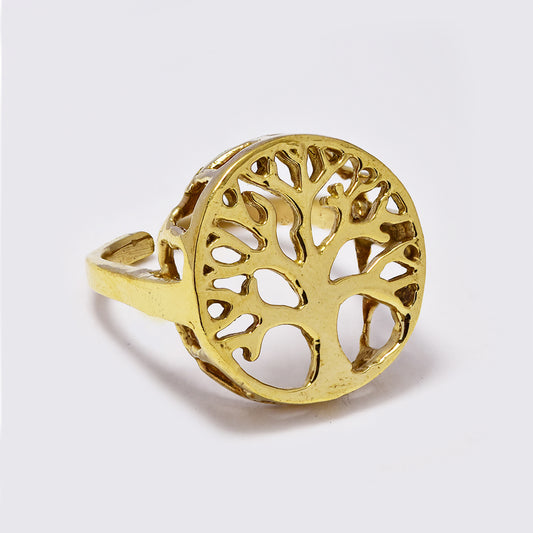 Brass zigzag cutout crescent moon free size brass ring - IFR645