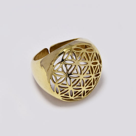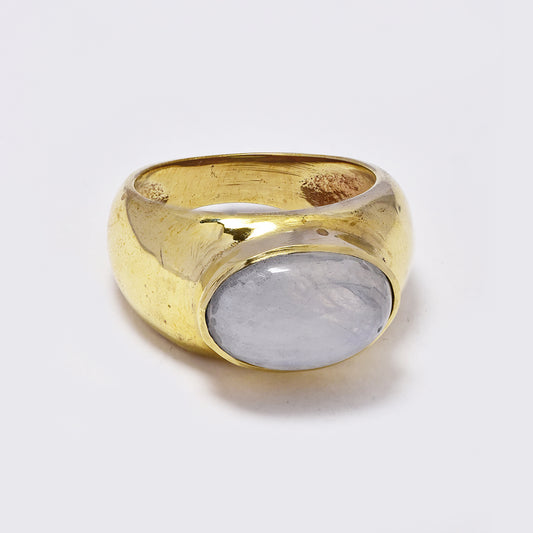 Brass tube set dome shaped brass ring with oval gemstone - IFR712