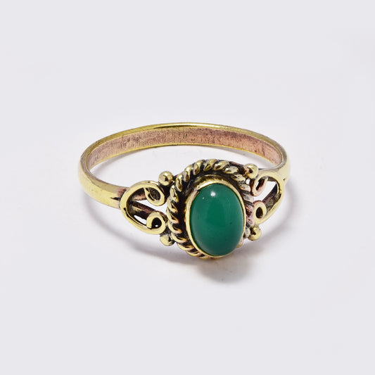 Brass ring with long oval and decorative shank gemstone - IFR703