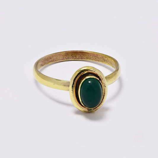 Brass ring with long oval and decorative shank gemstone - IFR703