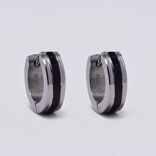 Buy 1 get 1 FREE - Stainless steel 2 tone stripe huggie earrings - SSYE288i