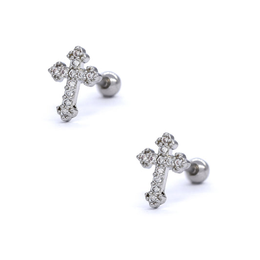 Stainless steel cubic zirconia cross cartilage piercing - SSYBJ4890