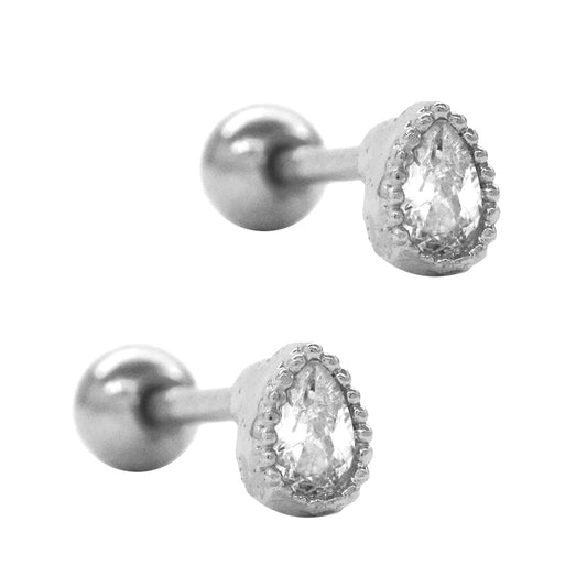 2 Pack Stainless steel teardrop cartilage piercing set with cubic zirconia - SSYBJ1824
