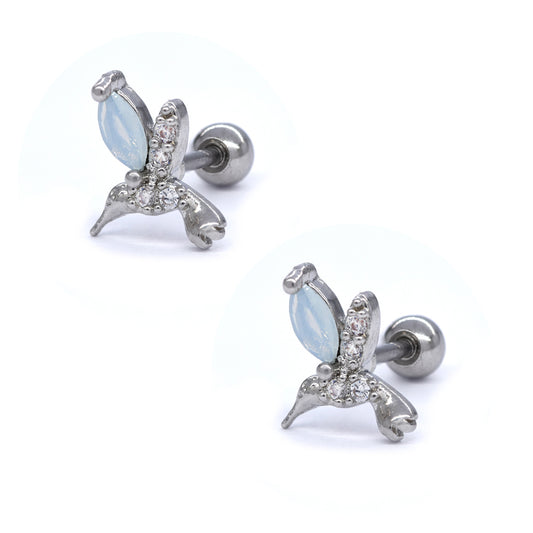 Stainless steel blue cubic zirconia butterfly cartilage piercing - SSYBJ4886