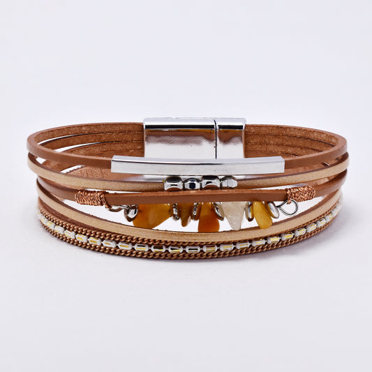 YB6307 - Fashion 19.5cm x 13mm multistrand natural stone and bead wrap bracelet