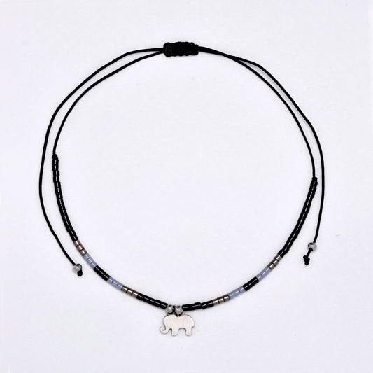 2 Pack adjustable cotton 6x8mm elephant charm beaded bracelet - YB4834S