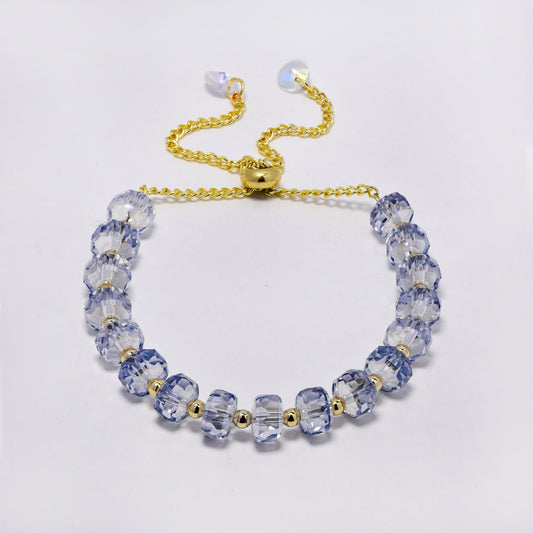 Slide adjustable blue glass crystal bead bracelet - YB5292