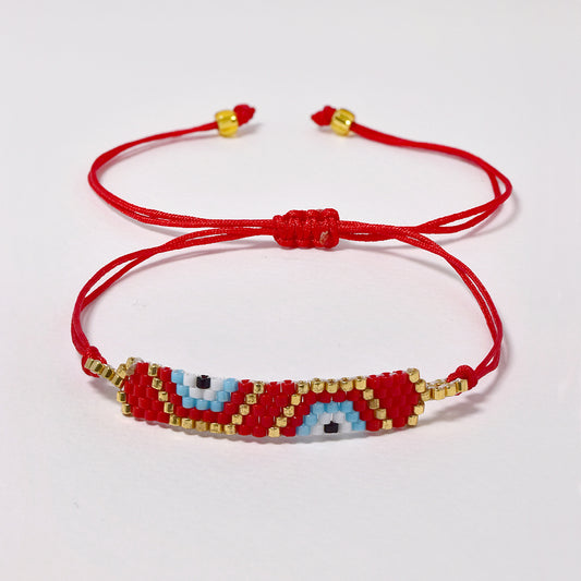 Fashion adjustable cotton and beaded evil eye patterned bracelet - MFB3011