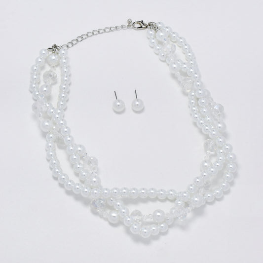 YST6323 - Fashion layered twisted faux pearl necklace & earring set