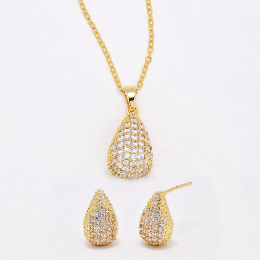 CZYST6591 - Premium CZ teardrop necklace & earring set