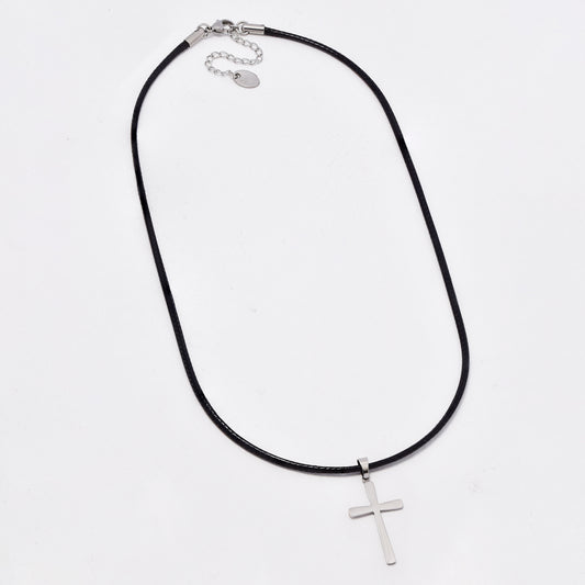 SSYN6444 - St Steel 40cm +5cm solid cross necklace