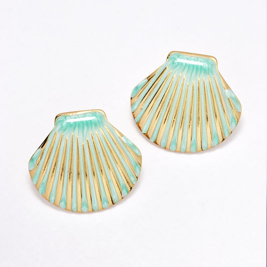 SSYE6387 - St Steel 29.3mm x 32mm large scallop shell earring