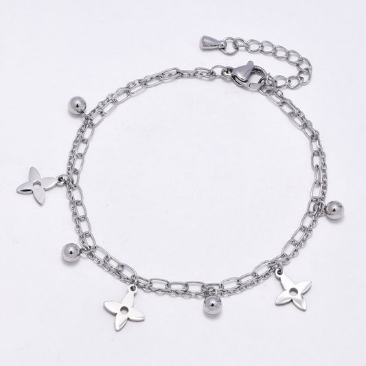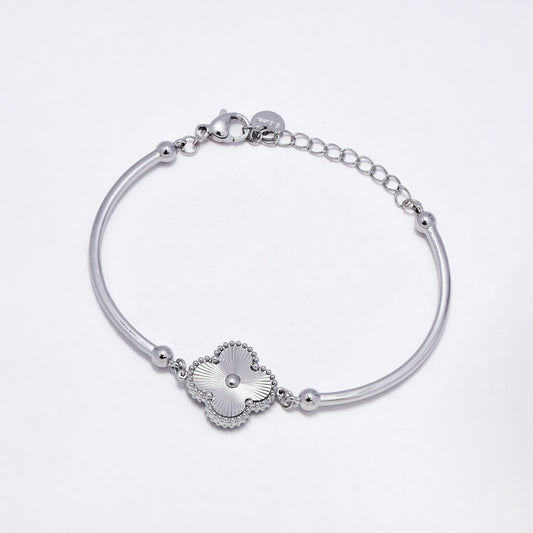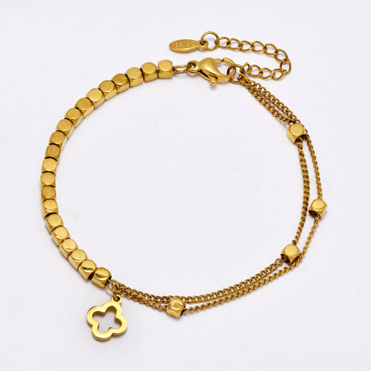 SSYB6886 - Steel layered four-leaf clover bracelet