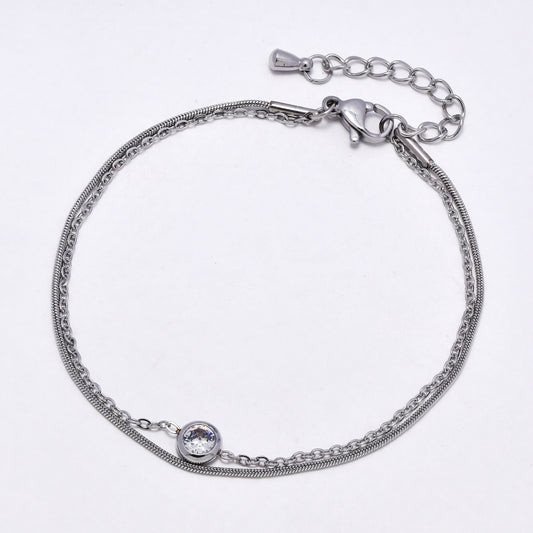 SSYB6881 - Steel CZ 17.5cm + 3cm layered bracelet