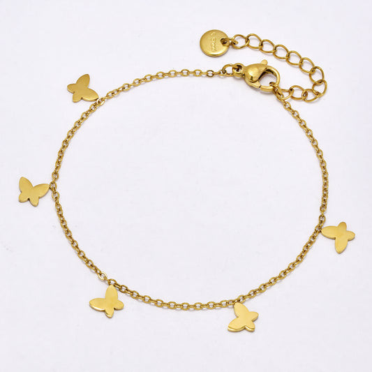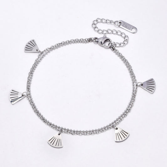 SSYB6853 - Steel 17.5cm + 5cm layered fan charm bracelet