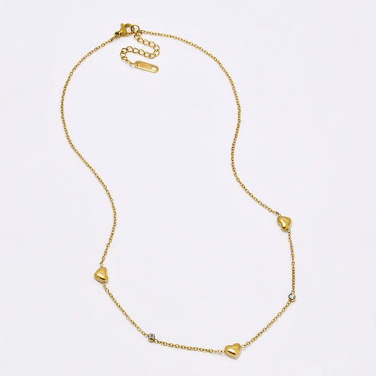 SSYN6854 - Steel 41.5cm + 4.5cm heart & stone necklace