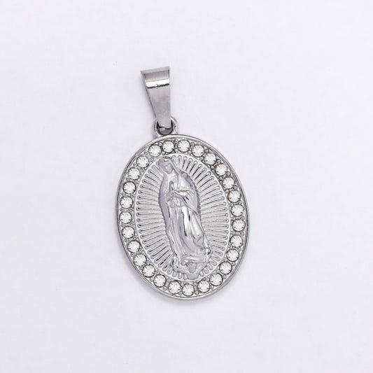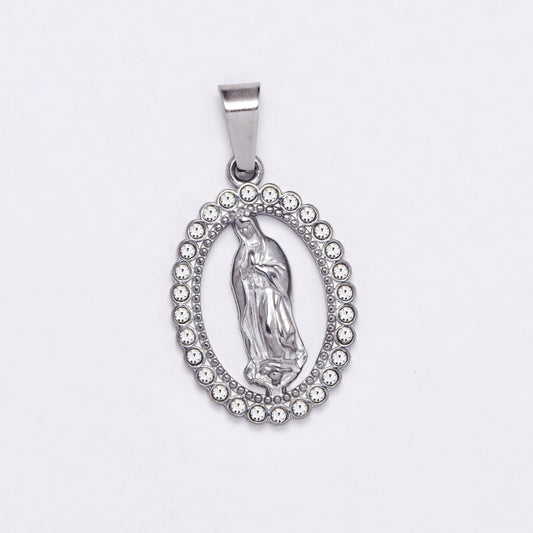 SSYP6857 - Steel 22mm x 17mm cutout Mother Mary CZ pendant