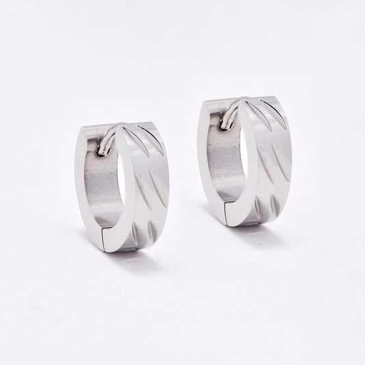 SSYE6642 - St Steel 13.5mm x 4mm huggies with cutout pattern