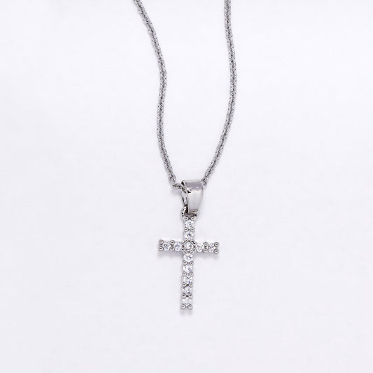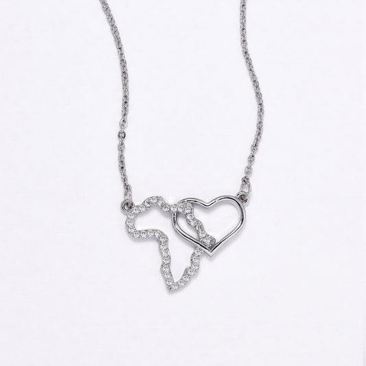 CZYN6400 - S Steel 41cm + 5cm half CZ heart necklace