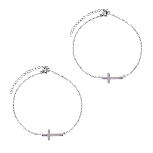 SSYA6535 - St Steel 21.5cm + 5cm bead & disk anklet