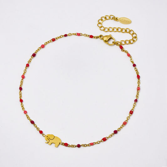 Stainless steel 19+5cm elephant charm enamel bead anklet - SSYA5330