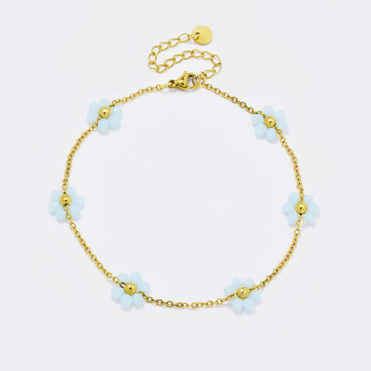 Stainless steel faux pearl and beaded flower anklet - SSYA5585