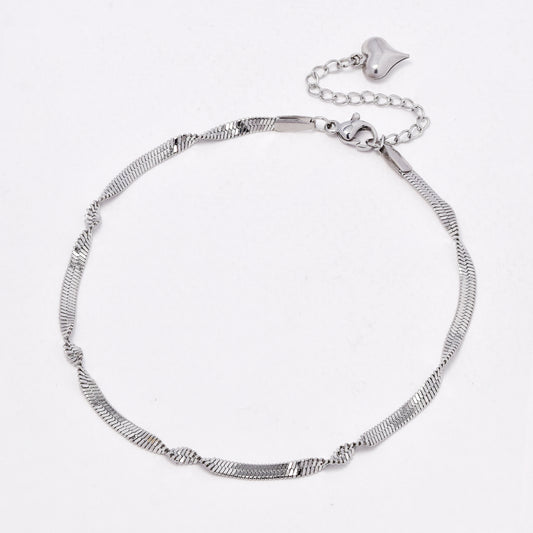 SSYA6550 - St Steel 22.5cm + 4.5cm x 3mm twisted herringbone anklet