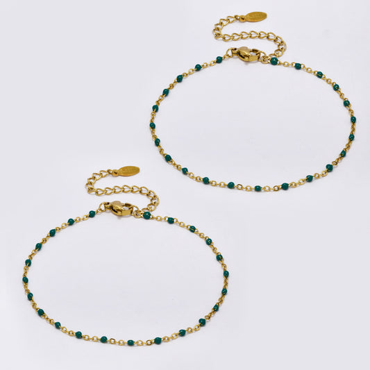 2 Pack Stainless steel beaded 21+5.5cm colour enamel beads anklet - SSYA4930