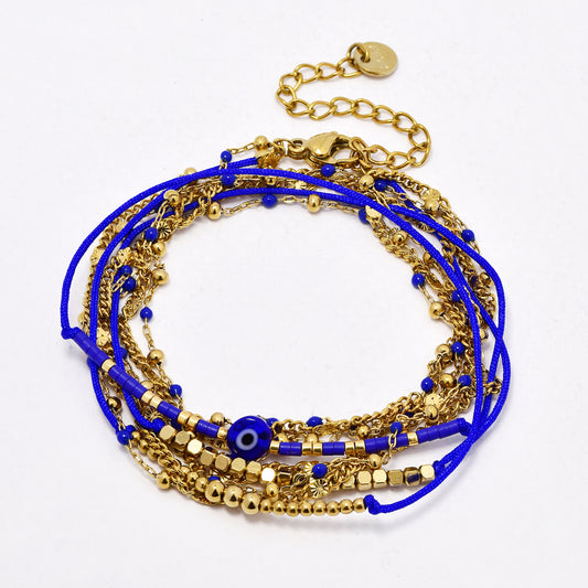 SSYB6531 - St Steel 49cm + 5cm evil eye beaded wrap bracelet