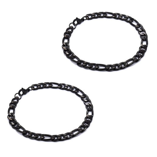 Stainless steel 2 pack 22cm x 7mm figaro bracelet - SSMB2859